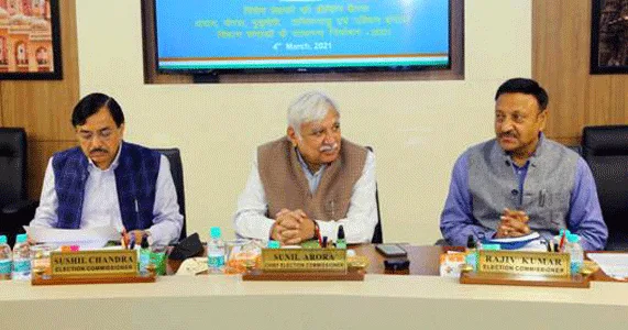 नई दिल्ली/ खुशबू पाण्डेय : केंद्रीय निर्वाचन आयोग ने पश्चिम बंगाल, असम, केरल, पुडुचेरी और तमिलनाडु में निष्पक्ष विधानसभा चुनाव कराने के लिए आज यहां विशेष पर्यवेक्षकों की हाईलेवल बैठक बुलाई। साथ ही सभी को निर्देश दिया कि सभी विशेष पर्यवेक्षक अपनी नियुक्ति वाले राज्यों एवं संघ शासित क्षेत्रों में जाएंगे और राज्य व जिला स्तर के अधिकारियों के द्वारा की जा रही चुनाव की तैयारियों का निरीक्षण और निगरानी करेंगे। इसके अलावा वे क्षेत्र में तैनात किए गए सामान्य, पुलिस और व्यय पर्यवेक्षकों के साथ लगातार बैठक भी करेंगे। मुख्य चुनाव आयुक्त सुनील अरोड़ा ने जमीनी स्तर पर कार्यरत सभी प्रवर्तन एजेंसियों के बीच व्यापक सामंजस्य पर जोर दिया। साथ ही कहा कि विशेष पर्यवेक्षकों की सुरक्षा बलों की तैनाती और उन्हें जल्द से जल्द चुनाव ड्यूटी के लिए भेजने में अतिरिक्त भूमिका होगी।