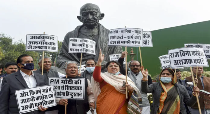 -राजघाट पर भी भाजपा नेताओं ने कांग्रेस के खिलाफ प्रदर्शन किया
