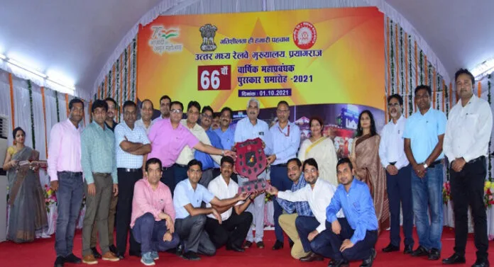 प्रयागराज /विनोद मिश्रा : उत्तर मध्य रेलवे मुख्यालय में आयोजित वार्षिक 66वें रेल सप्ताह समारोह कार्यक्रम में झांसी मंडल ने सर्वोत्तम मंडल शील्ड पर कब्जा जमाने में सफल रहा। जबकि प्रयागराज मंडल को समग्र सुधार शील्ड से नवाजा गया है। उत्तर मध्य रेलवे के महाप्रबंधक प्रमोद कुमार ने उत्कृष्ट कार्य करने वाले 147 अधिकारियों और कर्मचारियों को महाप्रबंधक पुरस्कार प्रदान किये गये। इसके अतिरिक्त 40 कर्मियो को 3 समूह पुरस्कार एवं विभिन्न शील्डे प्रदान की गईं। इसमें झांसी मंडल को मिली सर्वोत्तम मंडल एवं प्रयागराज मंडल को मिली समग्र सुधार शील्ड प्राप्त हुई।