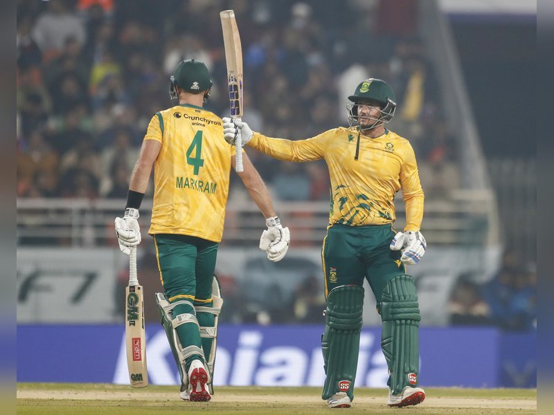 इसके बाद डी कॉक ने कप्तान एडेन मार्करम के साथ मिलकर पारी को गति दी और दोनों ने दूसरे विकेट के लिए 47 गेंदों पर 83 रन जोड़ दिए। मार्करम 29 रन बनाकर आउट हुए, लेकिन डी कॉक ने 46 गेंदों पर 7 छक्कों और 5 चौकों की मदद से 90 रनों की विस्फोटक पारी खेली।