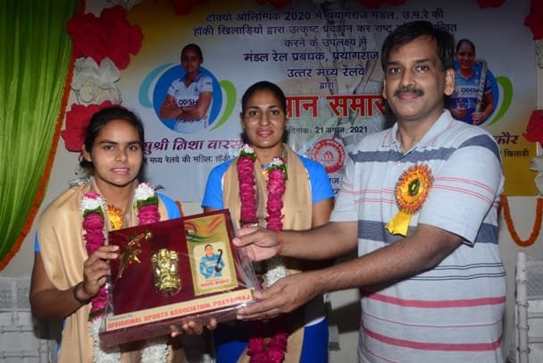 प्रयागराज /विनोद मिश्रा : टोक्यो ओलंपिक में सेमीफाइनल में पहुंचने वाली भारतीय हॉकी टीम की दो सदस्याओं गुरजीत कौर और निशा वारसी का प्रयागराज मण्डल की ओर से भव्य स्वागत किया गया। स्वागत के इसी क्रम में गुरजीत कौर और निशा वारसी के साथ मण्डल रेल प्रबंधक, प्रयागराज मण्डल मोहित चंद्रा सहित प्रयागराज मण्डल के अन्य अधीकारियों ने फिट इंडिया फ्रीडम रन 2.0 का शुभारम्भ किया।