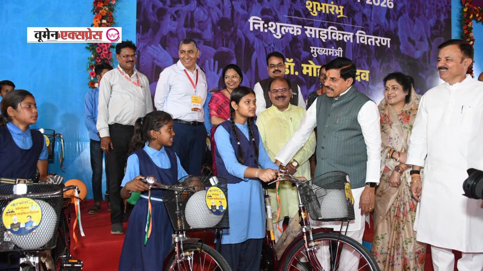 मुख्यमंत्री द्वारा बच्चों को नि:शुल्क साइकिल और पुस्तकें वितरित