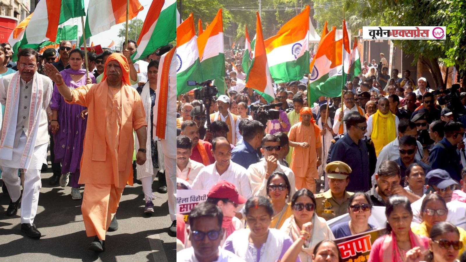 लखनऊ। उत्तर प्रदेश के मुख्यमंत्री योगी आदित्यनाथ ने मंगलवार को राजधानी लखनऊ में नारी शक्ति वंदन अधिनियम के संशोधन विधेयक को लोकसभा में पारित न होने देने के विरोध में जन आक्रोश महिला पदयात्रा का नेतृत्व किया। हजारों महिलाओं ने मुख्यमंत्री आवास से सिविल हॉस्पिटल होते हुए विधान भवन तक पदयात्रा में हिस्सा लिया। इस दौरान सीएम योगी के साथ पूरा मंत्रिमंडल, दोनों उपमुख्यमंत्री, भाजपा प्रदेश अध्यक्ष और सहयोगी दलों के नेता भी शामिल हुए। पदयात्रा का उद्देश्य विपक्षी दलों पर महिला आरक्षण के मुद्दे पर बाधा डालने का आरोप लगाना था।