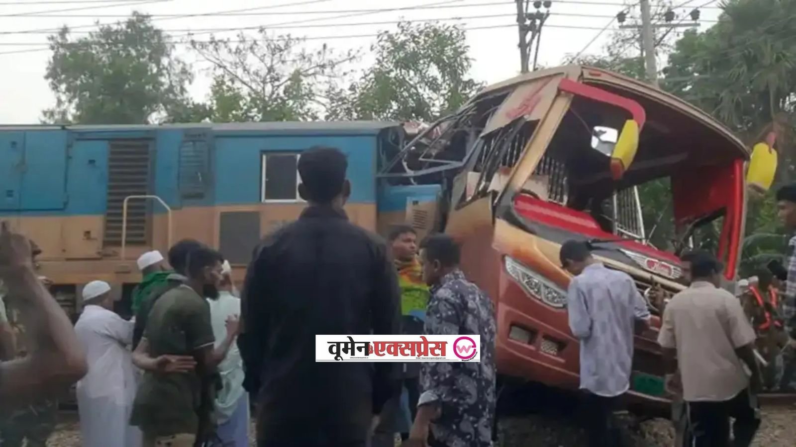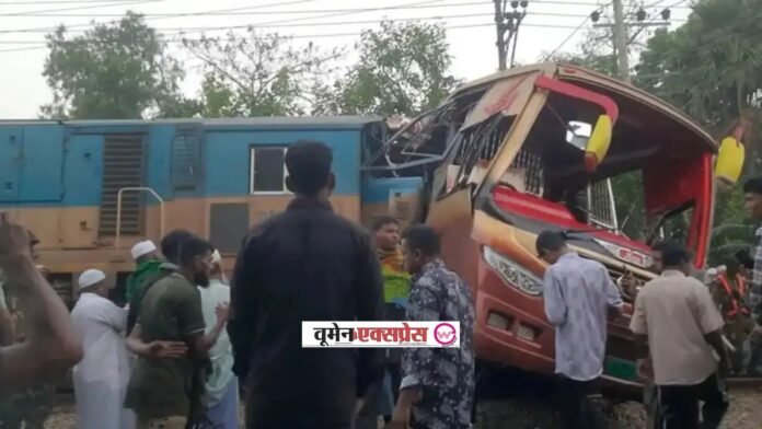 ढाका, 22 मार्च (WomenExpress)। बांग्लादेश के कुमिल्ला जिले में रविवार की सुबह एक भयानक हादसा हुआ, जिसमें एक मेल ट्रेन ने लेवल क्रॉसिंग पर बस से टक्कर मार दी। इस दुर्घटना में कम से कम 12 लोगों की मौत हो गई और लगभग 20 अन्य घायल हुए। हादसा कुमिल्ला सदर दक्षिण उपजिला के पडुआ बाजार लेवल क्रॉसिंग पर करीब 2:45 से 3:00 बजे के बीच हुआ, जहां ट्रेन ने बस को टक्कर मारकर उसे काफी दूर तक घसीट लिया।