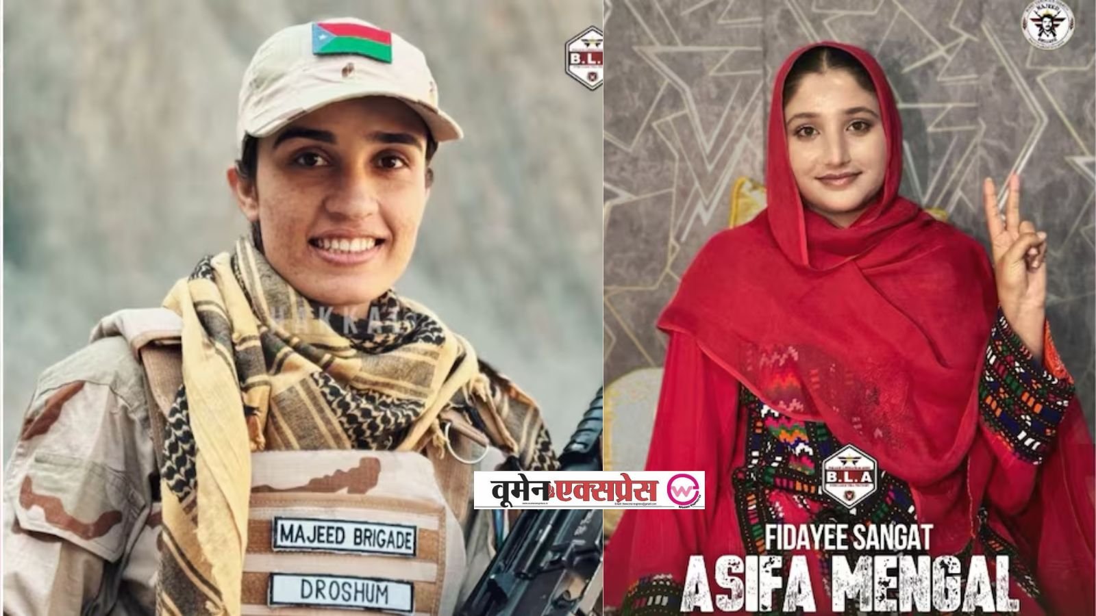 BLA ने अपने हमलों में दो महिलाओं की भागीदारी का खुलासा किया है, जो इस संगठन की रणनीति में बदलाव को दिखाता है। पहली महिला आसिफा मेंगल हैं, जिनकी उम्र 24 वर्ष है। BLA के अनुसार, वे मोहम्मद इस्माइल की बेटी हैं और नुश्की जिले की रहने वाली हैं। उनका जन्म 2 अक्टूबर 2002 को हुआ था। संगठन का दावा है कि उन्होंने 21वें जन्मदिन पर BLA की मजीद ब्रिगेड में शामिल होकर आत्मघाती हमले का फैसला किया था। जनवरी 2024 में उन्होंने फिदायीन मिशन के लिए तैयारियां शुरू कीं और 31 जनवरी को नुश्की में ISI मुख्यालय पर वाहन से बम हमला किया।